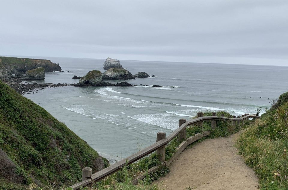 Part of the Los Padres National Forest, Sand Dollar Beach in Big Sur is located just 3.8 miles north of Gorda and 33 miles south of the Big Sur Station. It is the largest public beach on the Southern Big Sur Coast, offering a wide expanse of sand, picnic tables, toilets, parking. A large sign identifies the parking area next to the road. Shaded picnic areas offer ocean views. A short walk leads to stairs down to a large crescent beach with tidepools and rock formations. Open 10:00 a.m. to 6:00 p.m., year-round. Directions: Take highway 1, 30 miles north of San Simeon or 60 miles south of Carmel. Dogs on a leash no longer than 6 feet are allowed on the beach.
