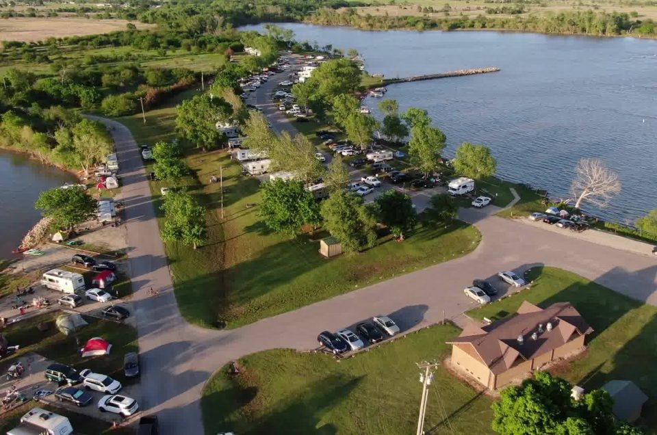Located at 16000 NE 50 St, Cheney, KS 67025, Cheney State Park offers a mix of primitive and utility camping. These areas range from the waters edge, to grassy, tree covered areas along a quite spring fed creek. The park features 223 reservable electrical hookup sites with water; over 400 primitive camp sites; 4 trailer dumpstations; 6 boat ramps with 22 launching lanes; 4 courtesy docks; 2 fish cleaning stations; 7 modern pit toilets; 9 showerhouses; 1 shelter with restrooms; 2 large group shelters; 2 medium group shelters; 29 small picnic shelters; a large shelter and a restroom; 3 nature trails including a 5 mile bicycle/walking trail; and 9 modern cabins. Pets on a leash no longer than 6 feet are allowed in the campground.