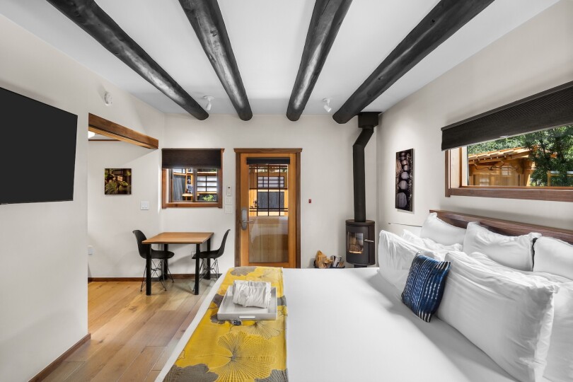 Just a short walk through the trees from the baths and treatment areas are seventeen hotel suites. Many have dog-proof courtyards. Some have kitchens.